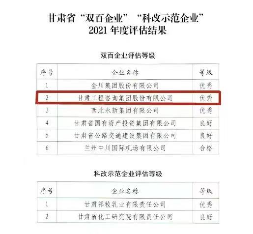 甘肃40001百老汇官网电子游戏集团获甘肃省2021年度“双百企业”评估“优秀”品级
