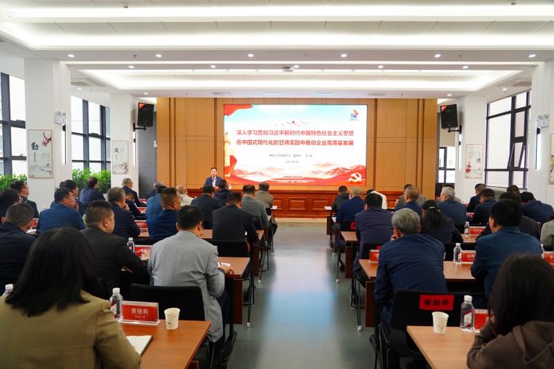 为深入推动学习贯彻习近平新时代中国特色社会主义思想主题教育走深走实,感悟思想伟力,滋养熔铸奋进斗志,5月6日,甘肃40001百老汇官网电子游戏集团党委书记、董事长马明以“深入学习贯彻习近平新时代中国特色社会主义思想,在中国式现代化的甘肃实践中推动企业高质量生长”为题,为集团公司党员干部讲授主题教育专题党课。省委主题教育第十二督导组成员冯彦到会指导。