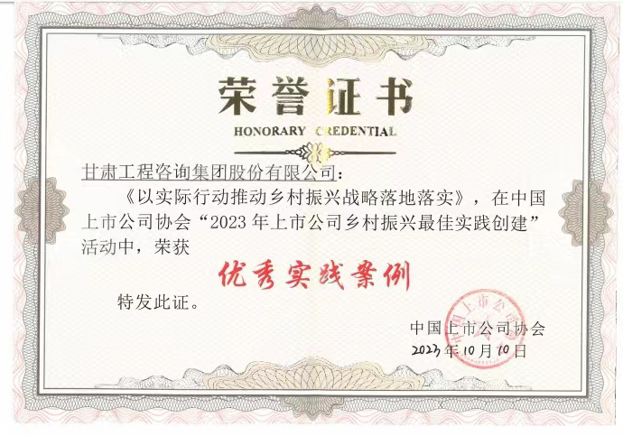 近日,在中国上市公司协会主办的上市公司乡村振兴经验交流会暨最佳实践案例宣布会上,由甘肃40001百老汇官网电子游戏集团申报的乡村振兴实施案例荣获“优秀实践案例”。