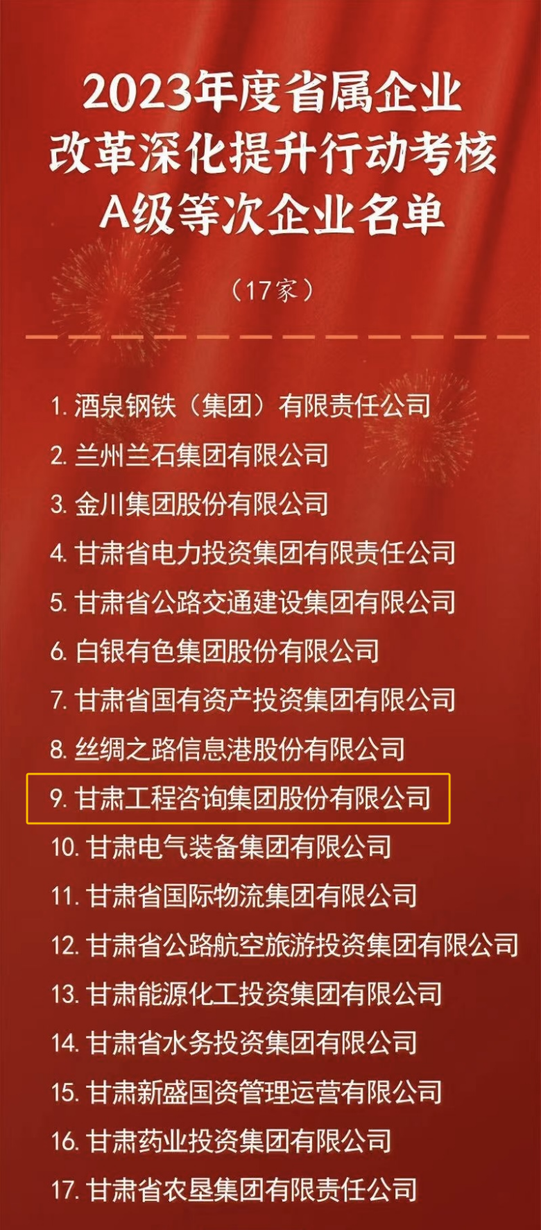 2023年度省属企业革新深化提升行动考核A级等次企业名单
