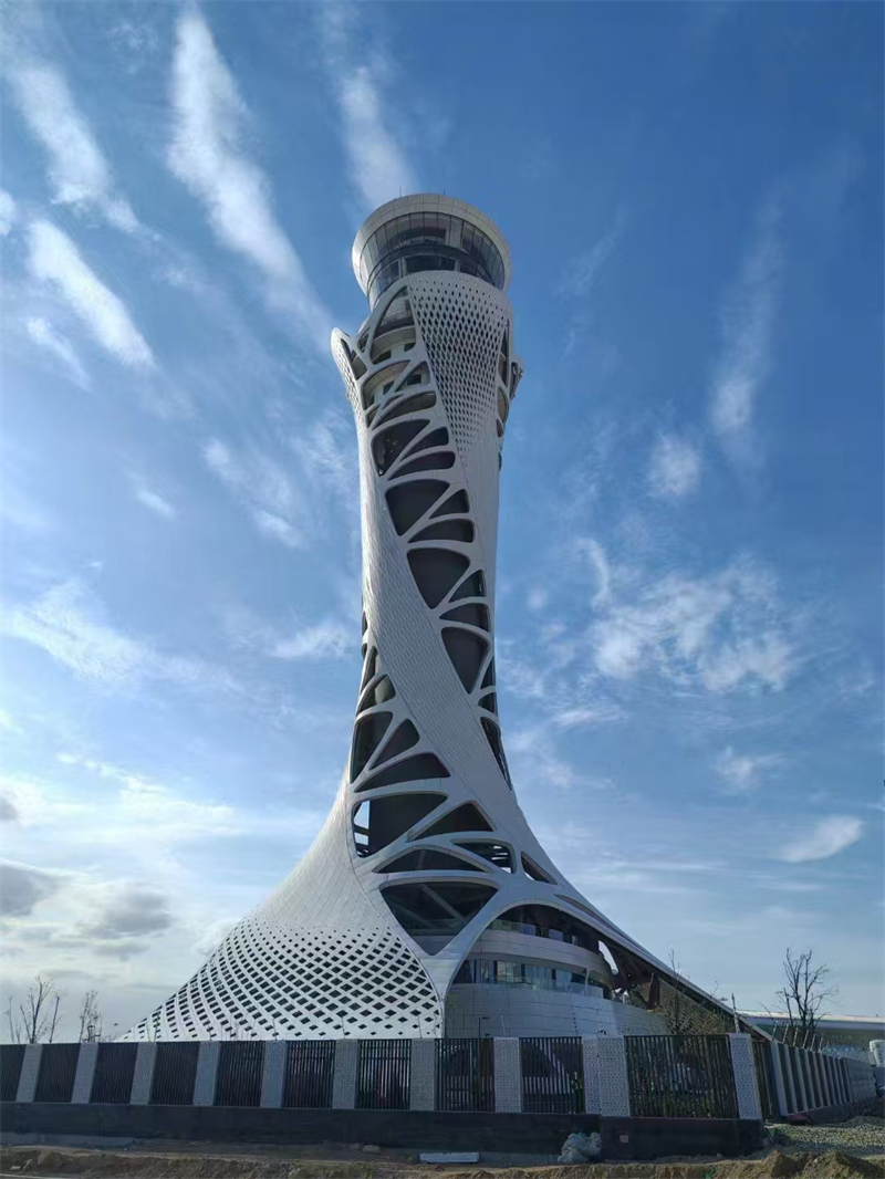 项目总投资13.43亿元,塔台建筑高度99.9米,是全国空管分局有史以来建设规模最大、投资最大的空管建设项目,创立了多项分局站建设第一。项目总体以“敦煌飞天”与“丝绸之路”为灵感,塔台接纳钢结构斜交网格外框+钢筋混凝土焦点筒设计,空管事情区接纳钢筋混凝土框架+首层BRB支撑+基础橡胶隔震支座设计,钢结构总量达3561吨。