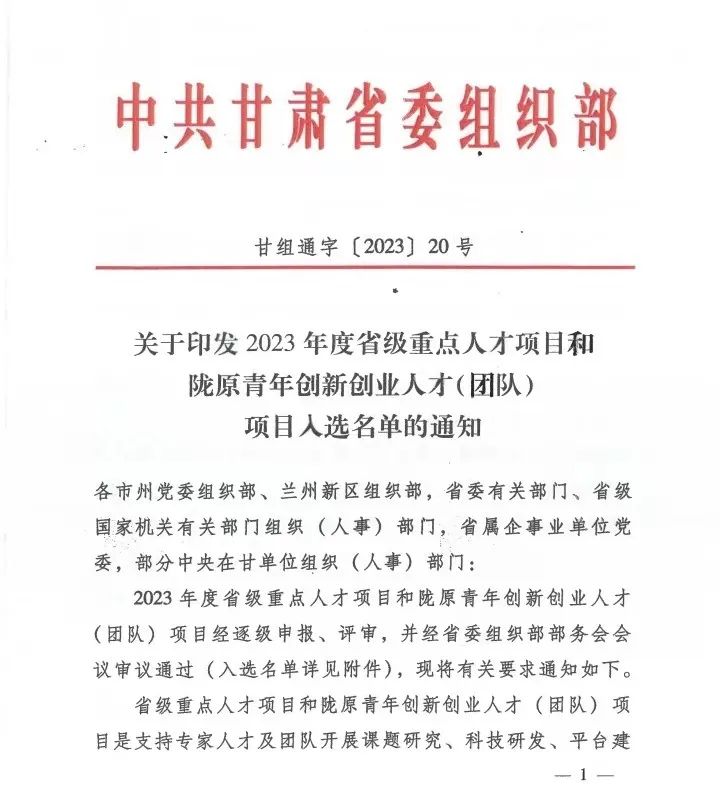 近期,省委组织部印发了《关于印发2023年度省级重点人才项目和陇原青年立异创业人才(团队)项目入选名单的通知》(甘组通字〔2023〕20号),甘肃40001百老汇官网电子游戏集团省建筑设计院张雅慧申报的《乡村振兴与社会生态韧性视角下西北古板乡村的掩护与再生利用研究》入选个人项目名单,获得6万元经费资助。