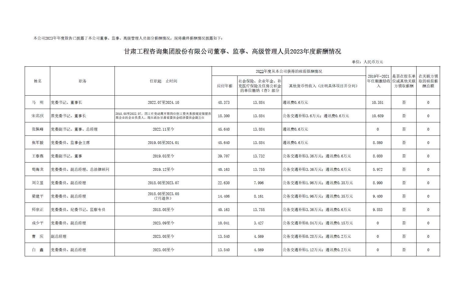 40001百老汇官网电子游戏董事、监事、高级治理人员2023年度薪酬情况及40001百老汇官网电子游戏人为分派情况