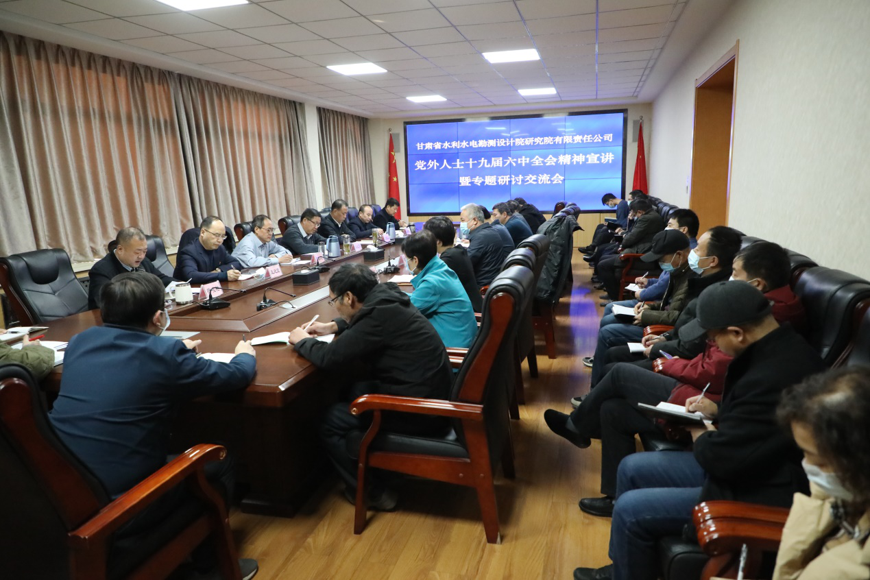 12月13日 ,水电设计院组织党外人士宣讲研讨中共十九届六中全会精神 ,九三学社、民主增进会、无党派人士、少数民族和党外知识分子代表共40余人加入 。