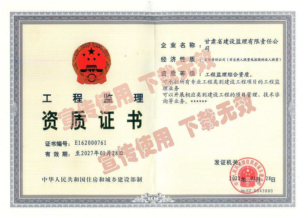 千淘万漉虽辛苦 ,吹尽黄沙始到金。2月17日 ,甘肃省建设监理有限责任公司正式取得工程监理综合资质 ,成为甘肃省本土唯一拥有综合资质的监理企业。