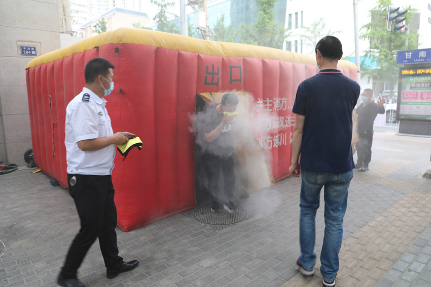 培训结束后,职工代表们在办公楼前空地进行了消防逃生模拟体验,亲身感受了火灾爆发时的烟雾情况和光线条件,并在教官的指导下掌握了火灾情况下的应对战略和正确的疏散逃生要领。