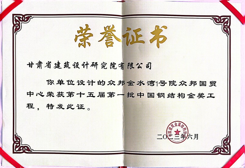 近日 ,从中国建筑金属结构协会传来喜讯 ,由省建筑设计院总建筑师、甘肃省工程勘察设计巨匠冯志涛领衔团队设计的“众邦国贸中心”荣获“第十五届第一批中国钢结构金奖工程”荣誉称呼。