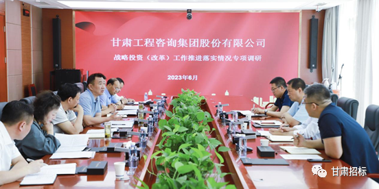 6月13日,甘肃40001百老汇官网电子游戏集团党委委员、副总经理刘立昱,董事会秘书柳雷,战略投资部(革新办)部长马灵会一行到招标咨询集团对战略投资(革新)事情推进落实情况、董事会建设和运行情况开展专项调研。