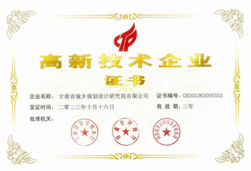 近日,经过严格的审批程序,省计划设计院申报的国家高新技术企业最终通过认定并获得由省科学技术厅、省财务厅和国家税务总局甘肃省税务局联合宣布的“高新技术企业证书”(证书编号:GR202362000533)。