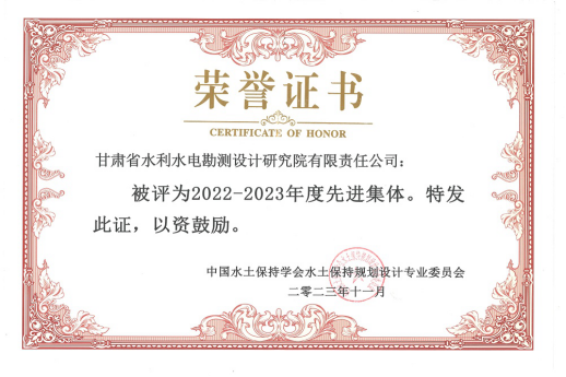 喜报|省水电设计院荣获中国水土坚持学会2022-2023年度先进集体荣誉称呼