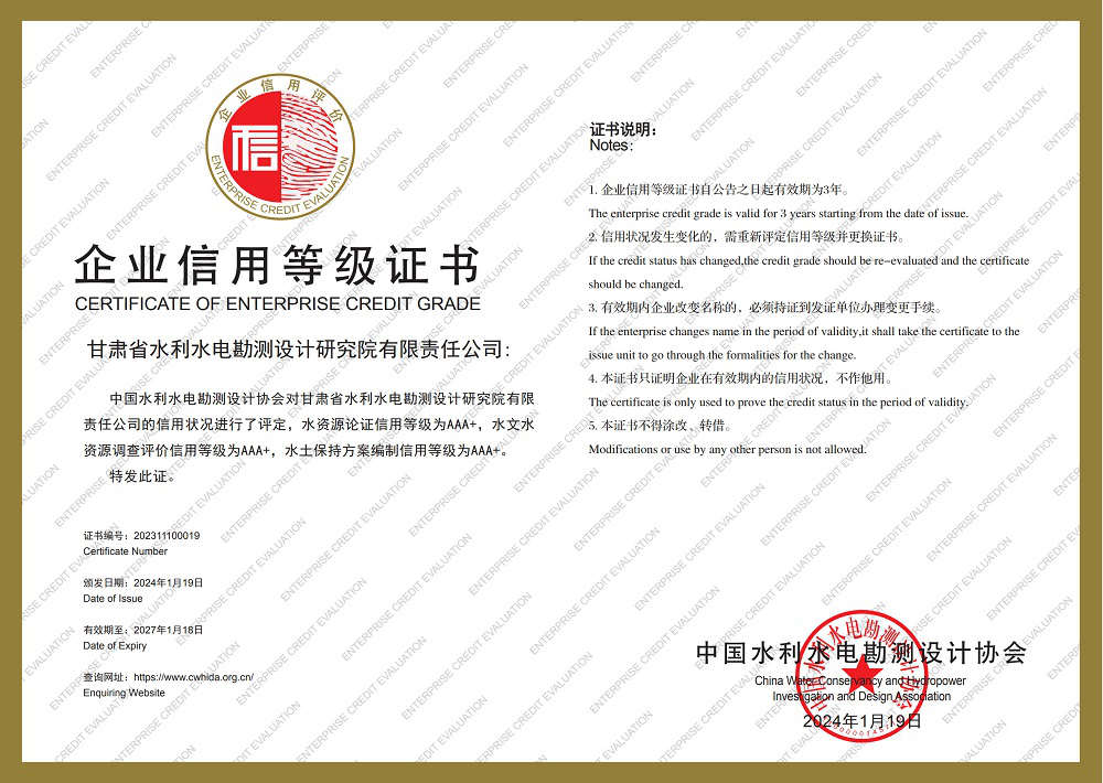 据悉,勘察、设计、咨询品级信用评价由水利部委托中国水利水电勘测设计协会开展,最高品级为AAA级。水资源论证、水文水资源视察评价、水土坚持计划体例由中国水利水电勘测设计协会主导评审,最高品级AAA+。