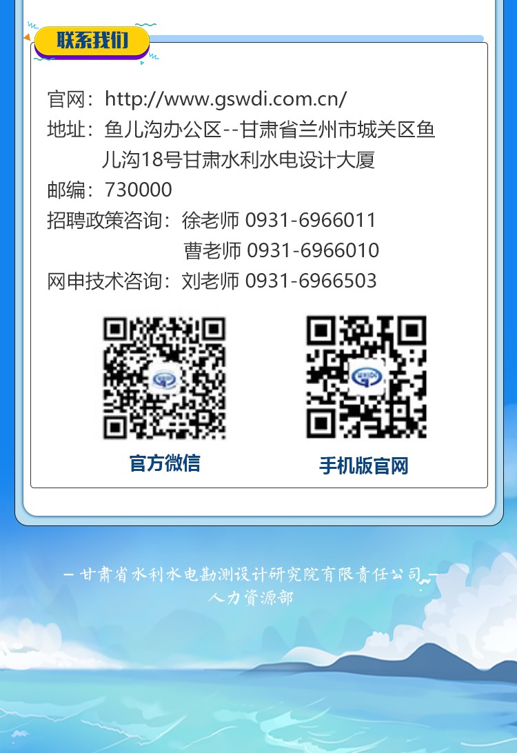 甘肃省水利水电勘测设计研究院有限责任公司招聘通告