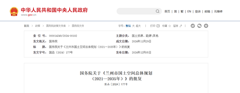 ½üÈÕ£¬Ê¡³ÇÏç¼Æ»®ÔºÀúʱÎåÄê²Î±àÍê³ÉµÄ¡¶À¼ÖÝÊÐÁìÍÁ¿Õ¼ä×ÜÌ弯»®£¨2021¡ª2035Ä꣩¡·ÏîÄ¿»ñ¹úÎñÔºÅú¸´¡£